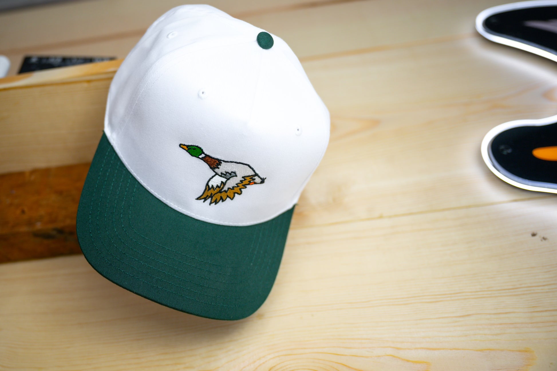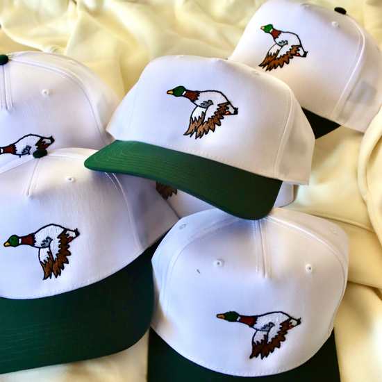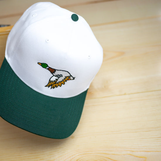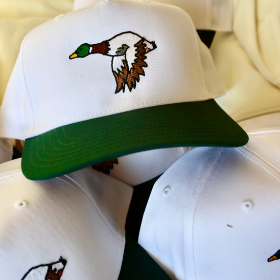 "Tribal Mallard" embroidered on front. Snapback closure. OSFM